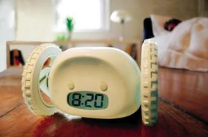 鬧鐘的英文名字“hide and seek”,意思是不抓住它就會(huì)無影無蹤了。據(jù)新華社報(bào)道,這是美國(guó)麻省理工學(xué)院媒體實(shí)驗(yàn)室的科學(xué)家發(fā)明的新型鬧鐘,科學(xué)家給小鐘裝了一套輪子,作為它的“腿腳”。鈴響后,如果貪睡的主人按掉響鈴,小鐘能夠“跑到”桌子或是房間的另一邊,繼續(xù)吹響“起床號(hào)”。研究人員表示,當(dāng)鬧鈴再次響起,單是起床找到小鐘本身就足以讓主人清醒,加之鬧鈴一直在響,就是貪睡的人也無法再次入睡了。