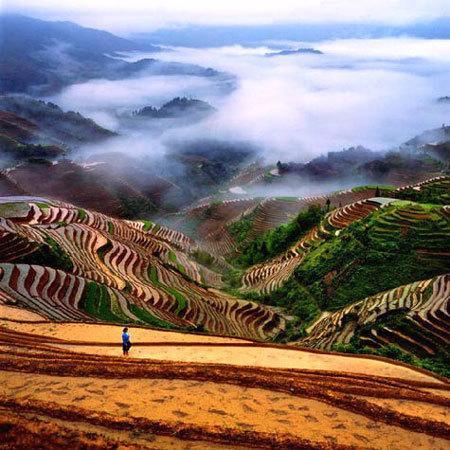 梯田的規(guī)模磅礴壯觀、氣勢(shì)恢宏,線(xiàn)條行云流水、瀟灑流暢,為天下梯田所望塵莫及;雖說(shuō)南國(guó)山區(qū)處處有梯田,可是像龍脊梯田這樣大規(guī)模的集中實(shí)屬罕見(jiàn)。從流水湍急的河谷,到白云繚繞的山巔,從萬(wàn)木蔥蘢的林邊到石壁陡崖前,凡有泥土的地方,都開(kāi)辟了梯田。垂直高度達(dá)五六里,橫向伸延五六里,那起伏的、高聳入云的山,蜿蜓的如同一級(jí)級(jí)登上藍(lán)天的天梯,像天與地之間一幅幅巨大的抽象畫(huà)……每位看見(jiàn)這一景色的游客,心靈也都會(huì)被深深地震撼!這是一種難以言表的,一種被大自然的雄奇以及人的偉力所引起的震撼!