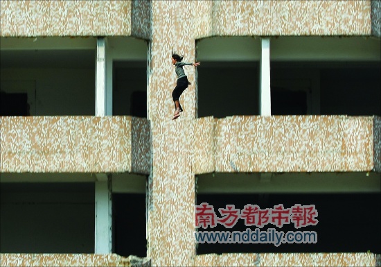 “我們一起跳吧”,當(dāng)端坐在莞城可園南路一棟6層拆遷樓頂?shù)呐诱f(shuō)完這話后,雙手張開,縱身跳下。時(shí)間仿佛定格在昨日上午9點(diǎn)43分。幾秒鐘后落在充氣墊的女子微微抬了抬腳,現(xiàn)場(chǎng)有人喊出“她還活著”。