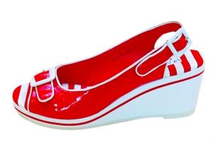 紅色系扣坡跟鞋(PLAY BY FUSE,549元)紅白搭配的度假風(fēng),會(huì)讓天秤女們有如發(fā)現(xiàn)新大陸般高興。