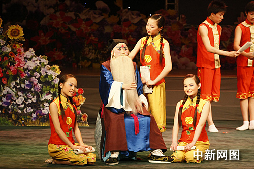 據(jù)悉,由200多位中國(guó)少年京劇團(tuán)的小演員通過(guò)生、旦、凈、丑等行當(dāng),將京劇的經(jīng)典元素重新編排、組合,既有精彩的京劇、舞蹈、音樂(lè),還采用了現(xiàn)代多媒體動(dòng)畫(huà)技術(shù),展現(xiàn)了《新三字經(jīng)》積極向上、富有時(shí)代教育意義的精神實(shí)質(zhì)。