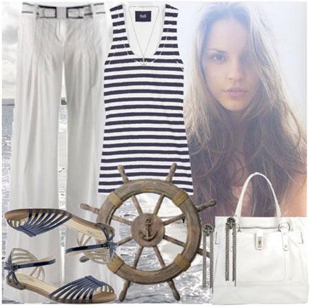 航海風(fēng)格黑白條紋背心也是不能錯過的單品,搭配白色長褲,清爽宜人。