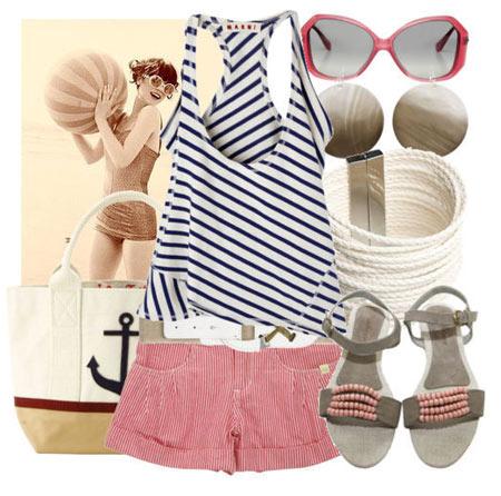 條紋背心和短褲的清爽搭配,去海邊的不錯選擇。