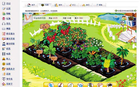 顯然,這個(gè)將聊天、游戲和即時(shí)記錄、博客的功能融為一體的網(wǎng)站,已經(jīng)吸引了不少25-35歲之間的年輕人。于是,在廣州,在深圳,在北京,在上海,在成都,白領(lǐng)圈子里經(jīng)常會聽到很多人這樣打招呼:“今天你偷菜了嗎?”有調(diào)查顯示,開心網(wǎng)的日均瀏覽量能達(dá)到70萬次以上,成了許多人熱捧的交友網(wǎng)站之一;調(diào)查還顯示,“偷菜”成為開心網(wǎng)上最搶手的游戲,讓人“欲罷不能”。