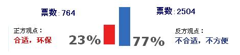 近日,人民網(wǎng)推出了辯論調(diào)查《長沙賓館不再提供免費一次性日用品,合適嗎》。截至辯論結(jié)束時,共有3268名網(wǎng)友參與了投票。其中,2504名網(wǎng)友提出反對,占總?cè)藬?shù)的77%,理由主要為“不合適,不方便”,只有764名網(wǎng)友表示支持,認為此舉有利于“環(huán)!。
