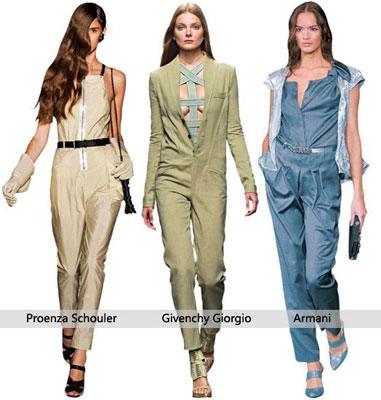 傘兵的制服——連體衣(Jumpsuits),已不僅僅是跳傘時(shí)的裝束,這季它成為潮流必備。除了鋪滿女性化的印花,西裝式的剪裁也迎合而上。設(shè)計(jì)師要讓你知道連體衣也能千變?nèi)f化。如果愛時(shí)髦,那就穿一條連體衣吧!