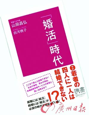 《“婚活”時代》由社會學家山田昌弘和記者白河桃子合著,去年初一上市即售出17萬冊。這兩名作者把日語“婚姻”和“活動”兩詞合成“婚活”一詞,意為一切與結婚相關的活動。他們鼓勵未婚青年主動出擊,因為坐等意中人出現(xiàn)遠遠不夠。