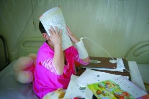 丹丹見(jiàn)到鏡頭馬上用書(shū)將臉遮擋起來(lái)。5歲女童丹丹被確診為急性重型再生障礙性貧血,入住北京道培醫(yī)院準(zhǔn)備骨髓移植。到昨日為止,她的父母已經(jīng)“消失”9天了。本報(bào)記者 吳江 攝
