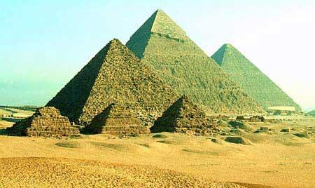 在古代埃及文中,金字塔是梯形分層的,因此又稱作層級(jí)金字塔。這是一種高大的角錐體建筑物,底座四方形,每個(gè)側(cè)面是三角形,樣子就像漢字的"金"字,所以我們叫它"金字塔"。