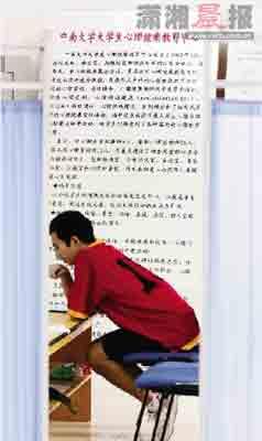 9月9日下午,中南大學(xué)迎新總站,心理健康教育中心的宣傳標(biāo)語非常醒目,大學(xué)生的心理健康越來越受到重視。圖/記者殷建軍