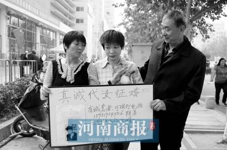 昨日,鄭州鬧市區(qū)內(nèi)出現(xiàn)一對(duì)父母“真誠(chéng)代女征婚”。