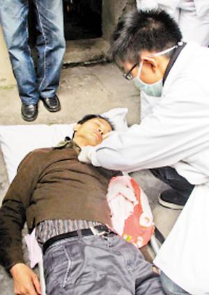 “警察出去后,見(jiàn)他還不放下刀片,三妹(王的妻子)就抱著孩子跪在他面前哀求。他用一只手去攙扶,但三妹沒(méi)有起來(lái)!壁w先生向記者講述了剛才發(fā)生的一幕,“我就跟他說(shuō),你放下刀片她就起來(lái)。沒(méi)想到他放下他老婆,用刀片往自己脖子上抹,我覺(jué)得這是最后的機(jī)會(huì),只有沖上去搶他的刀片!