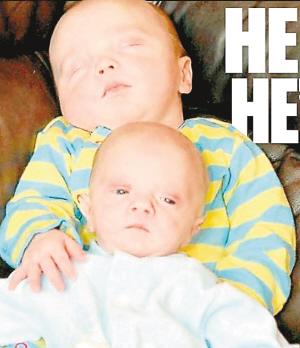 據(jù)英國《每日郵報》3日報道,英國阿伯丁郡班夫市3個月大嬰兒艾爾菲·里德和奧利·里德是一對雙胞胎兄弟,然而令人驚訝的是,雖然他們的外貌長得幾乎一模一樣,但體重卻相差了整整一倍,奧利的體重只有1.85公斤,但艾爾菲的體重卻有3.9公斤,身材瘦小的奧利看起來就好像是自己兄弟的“縮微版”。