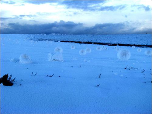很顯然,要形成這樣錯落有致的景觀,風速要剛剛好,而且降雪量也要均勻。據(jù)猜測,這里的降雪應該先是隨著風形成了雪球,等雪球增大到一定程度,就會碎開,再繼續(xù)隨風滾動,最后形成這些長筒狀。(海瀾)