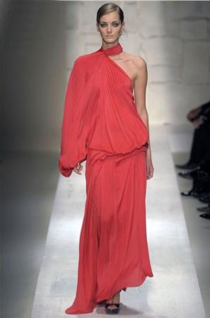 玫紅色的亮麗一下子扎入我們的眼睛,柔滑的絲緞和嵌亮絲的面料互相纏繞交錯(cuò),不同的光澤質(zhì)感豐富了視覺(jué)。再加上斜肩的吊帶、80年代風(fēng)格的Body-con捆綁設(shè)計(jì),以及前短后長(zhǎng)露出修長(zhǎng)雙腿的裙擺,都讓這款長(zhǎng)裙成為本季最佳性感之選。