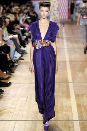 和式設(shè)計(jì)本季尚未退出潮流舞臺(tái),Basso &Brooke用深V領(lǐng)的衣襟和印著馥郁花朵的寬闊折紙感腰帶,將和風(fēng)融入希臘女神裙的設(shè)計(jì),顯得性感而比例姣好。而豎直褶裥面料,讓人想起三宅一生最著名的設(shè)計(jì),這樣的紋路的優(yōu)點(diǎn),就是讓人更加纖長(zhǎng),曲線畢露。