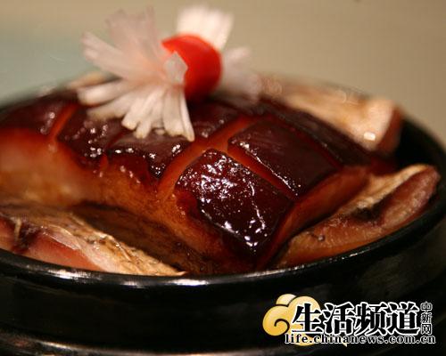 肥而不膩,入口即化。然而,此道菜最妙的之處更在于,將醉魚干與五花肉一起烹制,魚香與肉香相互侵染,酒香味濃,鍋底再墊上由竹鄉(xiāng)安吉運來的鮮嫩野筍,整道菜,口感豐富,極有層次。而且別看盛菜的容器不大,其實鍋底很深,份量足,絕對是一道很值的美味佳肴。
