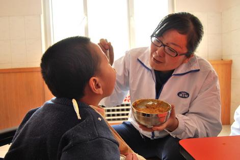儀式結(jié)束后,雅士利愛(ài)心小組在青海省慈善總會(huì)領(lǐng)導(dǎo)的引領(lǐng)下來(lái)到西寧市兒童福利院。在福利院四樓,愛(ài)心小組與孤殘兒童一起做互動(dòng)游戲,現(xiàn)場(chǎng)喜氣洋溢、充滿歡聲笑語(yǔ)。隨后,愛(ài)心小組在醫(yī)護(hù)人員的指導(dǎo)下仔細(xì)、認(rèn)真地為孤殘兒童喂食午餐,這一幕,如冬日暖陽(yáng)一般溫暖著孩子們的心靈。在福利院的大廳里有一個(gè)功德園,上面記錄了歷年來(lái)為兒童福利院捐款、捐物的單位和個(gè)人的名單和捐助金額,其中有國(guó)內(nèi)外福利機(jī)構(gòu)以及省內(nèi)外的企業(yè)和個(gè)人。據(jù)李永蓮院長(zhǎng)介紹,自兒童福利院成立以來(lái),受到了社會(huì)各界人士的極大關(guān)懷和幫助,從1998年至今,西寧市兒童福利院共接受社會(huì)各界捐款、捐物有人民幣954719.46元,130美元,2725歐元。李院長(zhǎng)說(shuō),社會(huì)各界對(duì)孩子們的關(guān)注和愛(ài)護(hù),給孩子們帶來(lái)了希望,有力地促進(jìn)了公益、福利事業(yè)的全面發(fā)展。