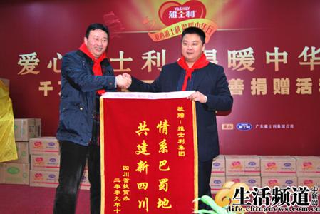 隨后,雅士利愛心小組來到“愛心雅士利•溫暖中華行”四川省捐贈儀式現場。儀式由蓬溪縣委常委、縣委組織部長張智勇主持,四川省扶貧辦社會扶貧處處長楊邦華、遂寧市扶貧辦主任戴見明、蓬溪縣人大常委會副主任吳岳寧、蓬溪縣人民政府副縣長廖理、楊文彬及廣安市廣安區(qū)商務局局長張自勇、廣安市廣安區(qū)扶貧辦副主任肖開武等地方領導和《中國扶貧》雜志社常務副社長郭金之等一行出席了現場。《四川日報》、遂寧電視臺、《遂寧日報》、蓬溪電視臺、《蓬溪周刊》等媒體記者一起見證捐贈過程。