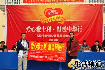 有一種愛心叫扶危濟(jì)困,有一種溫暖叫千萬陽光,有一種奉獻(xiàn)叫企業(yè)責(zé)任。雅士利相關(guān)負(fù)責(zé)人在儀式上表示:企業(yè)作為當(dāng)今社會(huì)主要組成部分,應(yīng)該與社會(huì)相互哺育,相互溫暖,雅士利始終將社會(huì)責(zé)任當(dāng)成企業(yè)精神的重要內(nèi)容加以傳揚(yáng),倡導(dǎo)做愛心企業(yè),最大可能地投身社會(huì)愛心慈善事業(yè)。2006年,雅士利集團(tuán)為特困家庭捐款108萬元,扶持100個(gè)貧困家庭幫助他們渡過難關(guān);2007年,"雅士利 愛灑五岳 情系江山"公益慈善活動(dòng)為貧困地區(qū)的兒童送去奶粉等營養(yǎng)品和學(xué)習(xí)、生活用具,關(guān)注他們的身體健康及成長;2008年,雅士利集團(tuán)為四川地震災(zāi)區(qū)捐贈(zèng)善款達(dá)350萬元,通過中華慈善總會(huì)第一時(shí)間捐給災(zāi)區(qū)。本次雅士利集團(tuán)為湖北省捐贈(zèng)物資為價(jià)值50萬的奶粉一批。