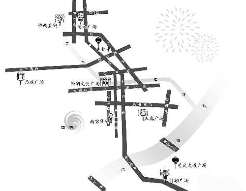 運(yùn)河文化廣場(chǎng)中心設(shè)置大型主題燈座,廣場(chǎng)南側(cè)江南戲臺(tái)(露天)將舉辦祈福2010運(yùn)河元宵燈彩音樂會(huì)。