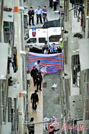 昨天上午11時(shí),記者接到報(bào)料后趕往寶安區(qū)民治街道民樂新村。在事發(fā)現(xiàn)場,警方已經(jīng)將133棟樓和134棟樓用警戒線包圍起來。133棟樓共6層,134棟樓共13層,跳樓的女子就摔在兩樓之間2米多寬的小巷里。