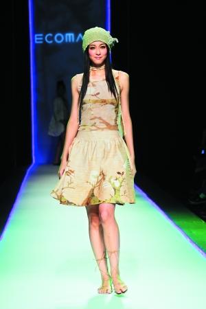 模特穿的時裝是用玉米桿作為原材料,低碳、環(huán)保。 記者 林建敏 攝