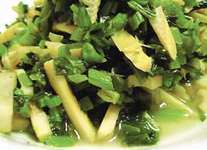 這四道菜雖然看起來簡單,用的卻都是當下的時令菜品,薺菜塘鯉魚以春末夏初江南一帶特有的野生塘鯉魚做主料,將魚去骨去皮切片,與春季最新鮮的野菜薺菜一起翻炒,色澤明快,鮮嫩香濃,純樸淡雅,營養(yǎng)搭配合理。