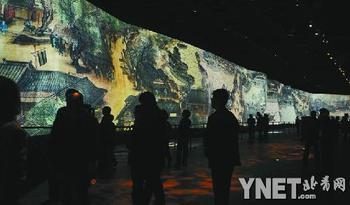 對于這幅電子巨作,以前媒體也報道的不少了,不過這幅圖到底有多大,似乎有兩種說法,有人說這幅圖是原作的100倍大,這顯然是夸張了,按照現(xiàn)場的解說,通過投影和動畫技術幻化出來的《清明上河圖》,比原作放大了30倍,實際是高6.3米、長130余米,觀眾走馬觀花還是得看10分鐘。