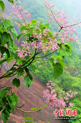 據(jù)了解,丹霞梧桐是丹霞山特有物種,主要分布在巖壁及山谷的淺土層中,多有小石積、金針花、還魂草、石蒜等傍生植物,開花期為每年的5月至6月。