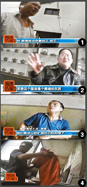 據(jù)央視每周質(zhì)量報告報道,由于政府實施了“禁礦令”,宜興原礦紫砂越來越少,于是一些煉泥廠開始摻雜使假,大量使用浙江、安徽等外地礦料或者普通陶土,通過添加化工原料或陶瓷色料進行調(diào)色,加工生產(chǎn)所謂的原礦紫砂泥。宜興一家紫砂壺加工點的老板承認,黃龍山的礦早已封掉,他們用的泥巴有的來自浙江有的是來自安徽。