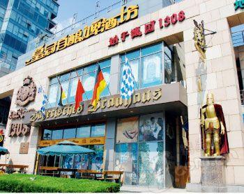記者來到位于工人體育場東門馬路對面的DK1308皇冠自釀啤酒坊,這里以德式騎士裝潢為主,門口豎立的騎士鎧甲讓酒吧分外醒目。工人體育場見證了多年中國足球的經(jīng)典賽事,這里的足球文化氛圍十分濃重,毗鄰三里屯酒吧區(qū)的DK1308擁有更加適合觀看足球比賽的文化底蘊(yùn)。市場部解經(jīng)理告訴記者,這里是北京不多的體驗(yàn)傳統(tǒng)巴伐利亞自釀啤酒文化的就餐吧。酒吧中庭挑高14米,氣勢恢宏,碩大的啤酒釀造機(jī)(德國頂級品牌釀酒設(shè)備Cspary卡斯巴瑞)豎立在中庭,懸掛的比賽賽程清晰可見,便于人們觀看球賽。酒吧內(nèi)懸掛了參加本次世界杯的32國國旗,一進(jìn)門就能讓客人體會到世界杯的氣氛。樓上三層的超大投影屏幕能夠?yàn)榍蛎钥辞蛱峁└蟮谋憷?/p>