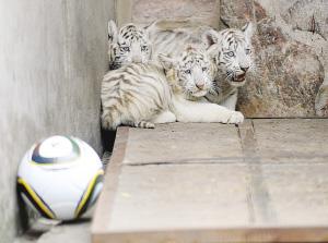 那邊南非世界杯已經(jīng)開打,而這邊紅山動物園的動物們也蠢蠢欲動。昨天,首屆動物世界杯盛大舉行,小黑猩猩、小白虎、小獼猴個個“帶球上陣”。別當(dāng)真以為它們要踢球,其實,這只是園方為動物增加豐容項目,讓動物在園里生活得更健康,正值世界杯之際,園方給一些適合玩足球的動物放入了足球,供動物玩耍。