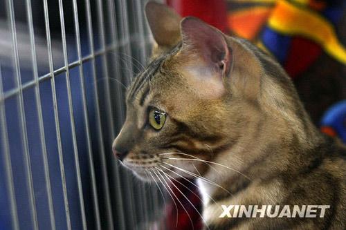 3月27日,在保加利亞普羅夫迪夫,一只孟加拉貓在寵物貓展上展出。為期兩天的普羅夫迪夫國際寵物貓展在這里舉行,200多只寵物貓參展。新華社發(fā)(維爾科·安科洛夫攝)