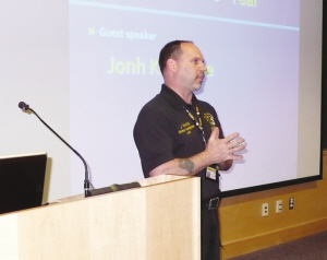 舊金山加大犯罪分析專家John Racine現(xiàn)場(chǎng)介紹安全常識(shí),比如“雙肩背書包不可單肩背”,并當(dāng)場(chǎng)扮演歹人如何能輕而易舉搶走學(xué)生肩頭的背包。在街頭行走時(shí)要顯示自信心,萬(wàn)一感覺有人尾隨時(shí),可以采取穿越馬路和到鄰近商店求助報(bào)警的方式來保護(hù)自己。(劉海平)