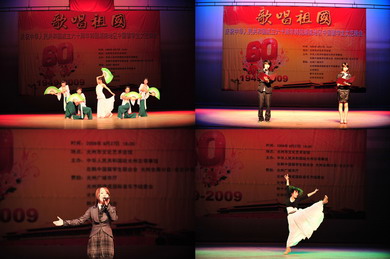 隨后,同學(xué)們圍繞“歌唱祖國,用歌聲為祖國生日獻禮”的主題,表演了豐富多彩的文藝節(jié)目。開場團體舞蹈《春天的故事》造型優(yōu)美,歌曲《我和我的祖國》傾注了年輕海外學(xué)子對祖國母親的款款深情,歌聲嘹亮,獨舞《征途》英姿颯爽,獨唱《再見瀏陽河》優(yōu)美動聽。此外,二胡演奏、詩歌朗誦、鋼琴獨奏、小提琴演奏和獨具特色的中國旗袍時裝秀等表演贏得了全場觀眾的喝彩。雖然這次參加演出的絕大多數(shù)是80后、90后的年輕學(xué)生,但每一個節(jié)目都經(jīng)過了精心準(zhǔn)備和反復(fù)排練,每一個表演都展現(xiàn)了同學(xué)們對祖國60華誕的喜悅和自豪。形式多樣、異彩紛呈的演出博得滿場觀眾一陣又一陣熱烈的掌聲和歡呼聲。
