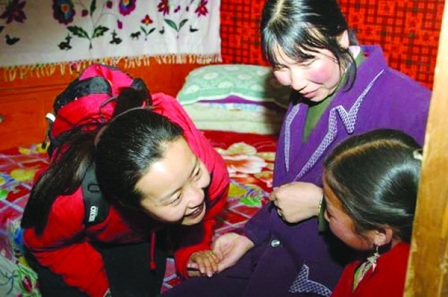 支教結(jié)束的時(shí)候,沈吟含著淚和那些孩子道別,一些孩子的媽媽為感激這位遠(yuǎn)道而來的好老師,還親自為她納鞋墊!岸际抢C花的,我有30多雙,很漂亮。”沈吟說。(王曉波)