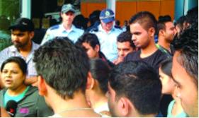 在學生們心情慌亂地填寫轉(zhuǎn)校表格時,警方和保安在現(xiàn)場嚴陣以待。這些表格由清盤人派發(fā),AUSTECH學院的管理層沒有到場回答學生們的疑問。