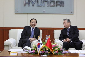 中新網(wǎng)4月13日電 據(jù)外交部網(wǎng)站消息,2010年4月9日,應(yīng)現(xiàn)代起亞自動(dòng)車集團(tuán)邀請(qǐng),張?chǎng)紊笫孤暑I(lǐng)由中國(guó)駐韓國(guó)大使館館員、在韓留學(xué)生等200余人組成的“中韓友好產(chǎn)業(yè)考察團(tuán)”訪問了位于忠清南道牙山市的現(xiàn)代汽車牙山工廠。韓國(guó)國(guó)務(wù)總理室吳鈞局長(zhǎng)、知識(shí)經(jīng)濟(jì)部、教育科技部、外交通商部等部門官員出席了有關(guān)活動(dòng)。