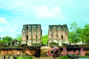 另一古城波隆納魯沃(Polonnaruwa)位于斯里蘭卡東北部,距首都科倫坡216公里,是11世紀(jì)到13世紀(jì)的王都。波隆納魯沃古城的建筑風(fēng)格樣式和布局結(jié)構(gòu)與古都阿努拉德普勒有很大不同,城內(nèi)沿中軸線布局,但其實質(zhì)還是受到了古都的影響。古都的大型人工湖波羅迦羅摩海始建于12世紀(jì),系波羅迦羅摩巴忽大帝把小型盤陀灌溉水庫拓建而成,堤岸長13公里多,高12米,面積24平方公里。岸邊立有巨大石像,高3.5米,據(jù)傳為波羅迦羅摩巴忽的雕像,雙手在胸前持軛,以示王權(quán)。