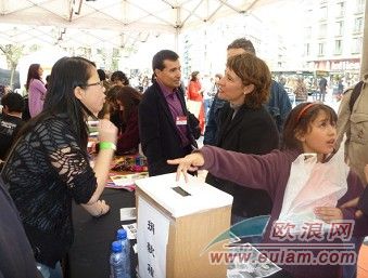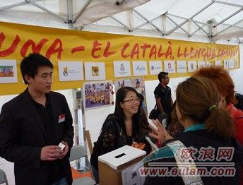 加泰羅尼亞語(yǔ)保護(hù)協(xié)會(huì)在SANT JORDI當(dāng)天也組織了一系列的活動(dòng),這些活動(dòng)也得到巴塞羅那中國(guó)學(xué)生學(xué)者聯(lián)誼會(huì)的積極參與。23日早上在VILATOMAT 2號(hào)的某個(gè)公立小學(xué)里,巴塞羅那中國(guó)留學(xué)生黃星星、張志軍、周子恒、項(xiàng)天宇、徐忱同學(xué)等人就積極參加他們的一系列活動(dòng)。當(dāng)天下午加泰羅尼亞語(yǔ)協(xié)會(huì)在市中心的大學(xué)廣場(chǎng)搭建了臨時(shí)活動(dòng)地點(diǎn),同時(shí)也給巴塞羅那中國(guó)學(xué)生學(xué)者聯(lián)誼會(huì)一個(gè)宣傳自己的“攤位”。熱情的中國(guó)留學(xué)生們除了教過(guò)往的當(dāng)?shù)厝思靶∨笥褜懼形拿忠酝,小書法家張志俊同學(xué)用中文寫了一些字畫,并剪裁成漢字“拼圖”,讓當(dāng)?shù)氐男『⒆觽兤粗形淖,這些小孩子在玩樂(lè)之余,對(duì)中文產(chǎn)生了更加濃厚的興趣,留學(xué)生們借著這個(gè)活動(dòng),在推加泰蘭語(yǔ)影響力的同時(shí)也提高了中文的知名度。除此之外,中國(guó)留學(xué)生們不忘青海地震,還設(shè)立了專門的籌款箱,為青海地震籌款,在同學(xué)們的積極介紹下,路過(guò)的民眾都投下或多或少的零錢或紙幣,晚上活動(dòng)結(jié)束的時(shí)候中國(guó)留學(xué)生為青海地震籌得捐款103歐元。