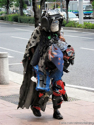 事情說(shuō)來(lái)也趕巧,日前一個(gè)偶然的機(jī)會(huì),正當(dāng)我走過(guò)神戶(hù)市中心時(shí)居然發(fā)現(xiàn)了這位哥!別的什么也不想說(shuō)了,不想像網(wǎng)絡(luò)上那么熱議“犀利哥”一樣去說(shuō),因?yàn)榭纯催@些流浪漢,老覺(jué)得有什么地方是相通的,盡管?chē)?guó)家不同,語(yǔ)言不同,但對(duì)生存的渴求卻是一樣的。同樣叫他“犀利哥”未必合適,在此就算我的一個(gè)直覺(jué)吧。據(jù)說(shuō)這個(gè)日本流浪漢從不露臉,長(zhǎng)年徘徊于鬧市的邊緣。
