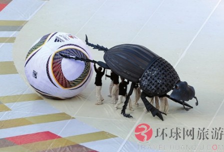 在南非世界杯的開(kāi)幕式上,屎殼郎滾動(dòng)著名為“普天同慶”的巨型足球,把整個(gè)開(kāi)幕式推向最高潮。它的出現(xiàn),讓人們看到了人與自然的和諧。