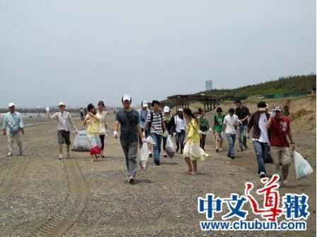 中新網(wǎng)6月17日電 據(jù)日本《中文導(dǎo)報》報道,2010年6月13日,按照預(yù)先計劃,日本千葉大學(xué)中國留學(xué)生學(xué)友會舉行了一次特殊的志愿活動—— “千葉海港綠色環(huán)保活動”,為稻毛海濱公園的旅游區(qū)拾掇垃圾,清理環(huán)境衛(wèi)生。