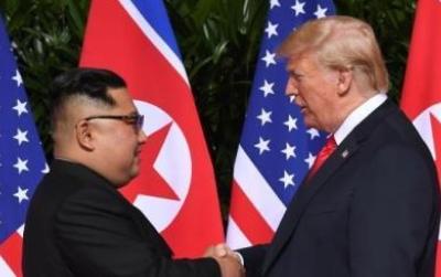 據(jù)此前報道,2018年6月12日,特朗普與金正恩曾在新加坡舉行兩國在任領(lǐng)導(dǎo)人史上首次會晤,就朝鮮半島無核化以及緩解雙方緊張關(guān)系展開對話。