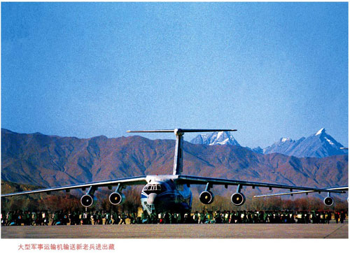 兵馬未動(dòng),裝備先行。1992年4月,根據(jù)總部安排部署,成都軍區(qū)首次使用伊爾-76運(yùn)輸機(jī)空運(yùn)進(jìn)出藏物資,從此年度空運(yùn)進(jìn)出藏物資正式啟動(dòng),空運(yùn)對(duì)象由人員向物資拓展,完成了由單純使用民航運(yùn)力、民用機(jī)場(chǎng)向軍民運(yùn)力合用、軍民機(jī)場(chǎng)并舉過(guò)渡,開(kāi)創(chuàng)了全軍航空軍事運(yùn)輸人員、物資快速投送的先河。