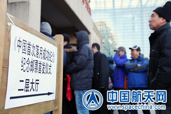 時(shí)間跨入2014年的第一天,早上7點(diǎn),天剛蒙蒙亮,北京天文館還未開(kāi)門(mén),就已經(jīng)有上百人自發(fā)地在門(mén)前排起了長(zhǎng)隊(duì),這些集郵愛(ài)好者正等待著購(gòu)買(mǎi)《中國(guó)首次落月成功紀(jì)念》郵票和首日封,并加蓋“月亮郵局”紀(jì)念郵戳,將“第一落”的喜悅分享到五湖四海。