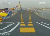 9月25日,我國第一艘航空母艦“遼寧艦”在中國船舶重工集團(tuán)公司大連造船廠正式交付海軍。圖為中國首艘航母機(jī)庫內(nèi)停放的疑似艦載機(jī)。(央視截圖)