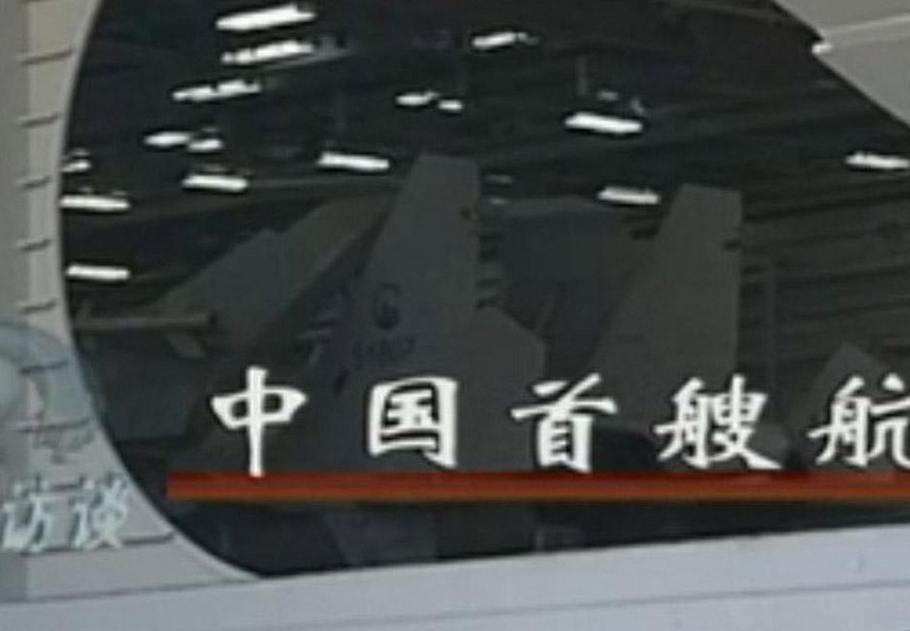 圖為中國首艘航母機(jī)庫內(nèi)停放的疑似艦載機(jī)。(央視截圖)