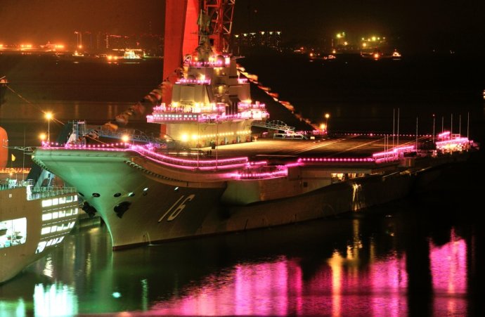 網(wǎng)友拍我航母平臺(tái)“遼寧艦”節(jié)日期間霓虹燈閃亮裝點(diǎn)海灣
